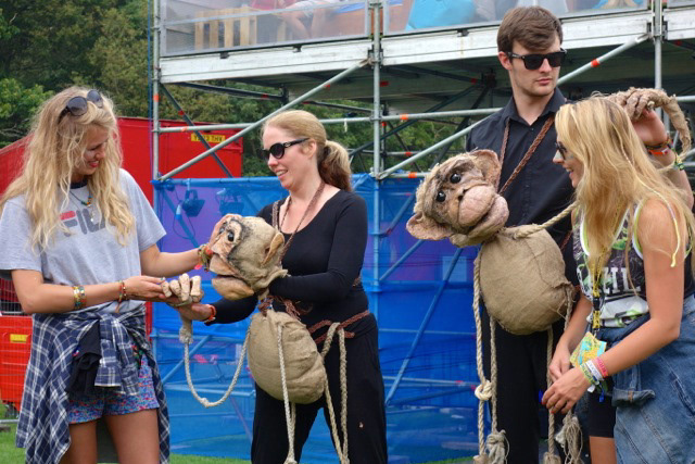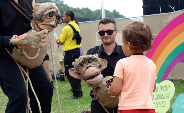 These two cheeky chimps love performing the usual monkey antics; preening, eating bananas and generally monkeying around as well as interacting with the audience in increasingly cheeky ways, stealing mobiles, wallets and food, and sneaking to make em jump.... Cheeky Monkeys Puppet Walkabout Act You never know where they’ll swing in from and what they’ll get up to: Happy Client Quote: “..........so amazingly life-like! The safari puppeteers brought this to life with lots of grace as well as some cheeky curiosity.............A very talented team, who are friendly and lovely to deal with too!’’ Beccy Burchell - Bestival Arts Producer 2014