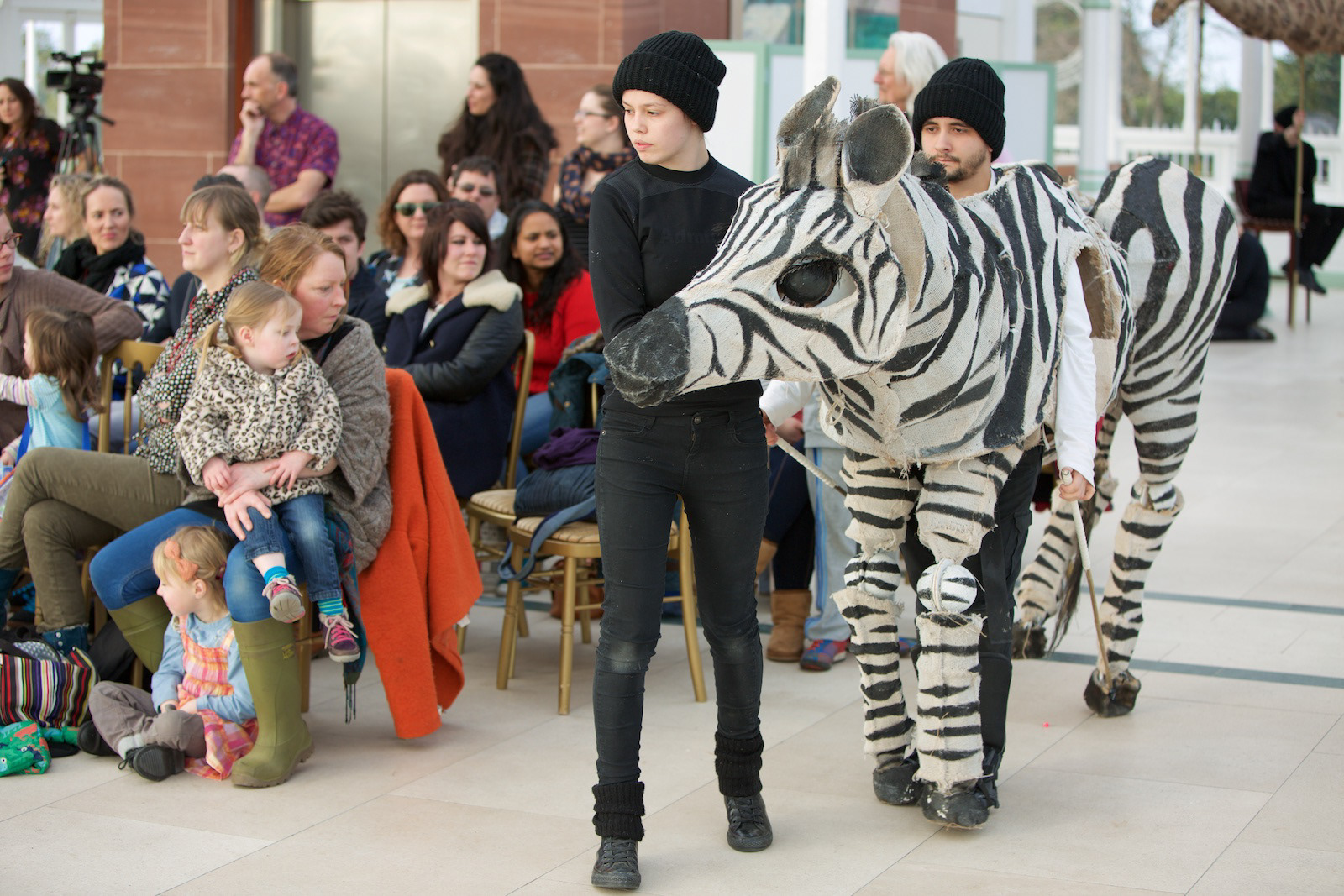 Meet VIP Puppets gentle pair of zebras. Watch them gracefully meander through the Serengeti plains, or even an inner city street! This cautious pair will nervously search each other out, and excitedly move to greet each other. Encouraged by their attentive zookeepers they will meet their audience, and even enjoy some attention, food and petting. The zebras travel well and can be carried as hold luggage on international flights. ‘...... What a treat! I brought my children aged 3 & 4 to see the amazing puppets and it has proved to be an unforgettable experience for all three of us. That the children could interact so closely with the animals was a valuable experience...........the zebras were warm and friendly....... it was a unique family event with just the right balance of performance and participation, visually intriguing and delightful for all ages........ ‘ Louise Flooks - Participation Coordinator - Unity Theatre 2015